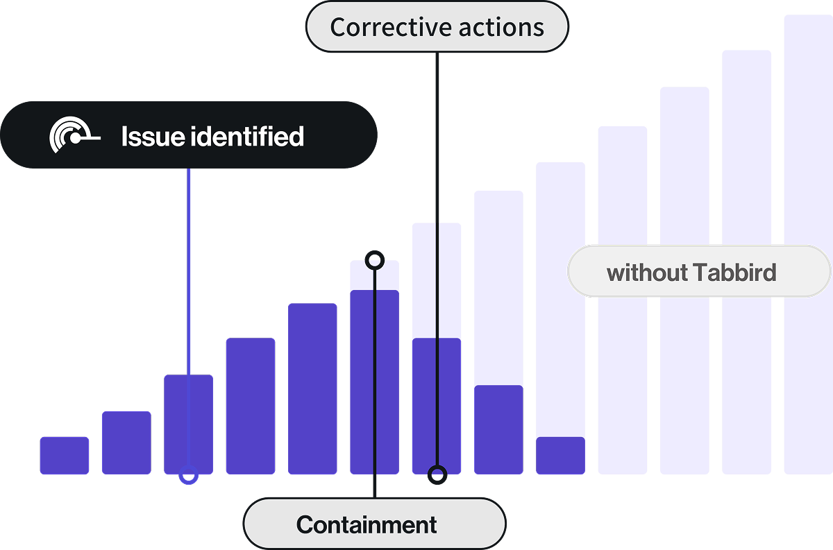 Scan and monitor thousands of warranty claims and machine data in real-time. Tabbird creates a machine knowledge graph to surface emerging failure modes 10x earlier than manual BI solutions.